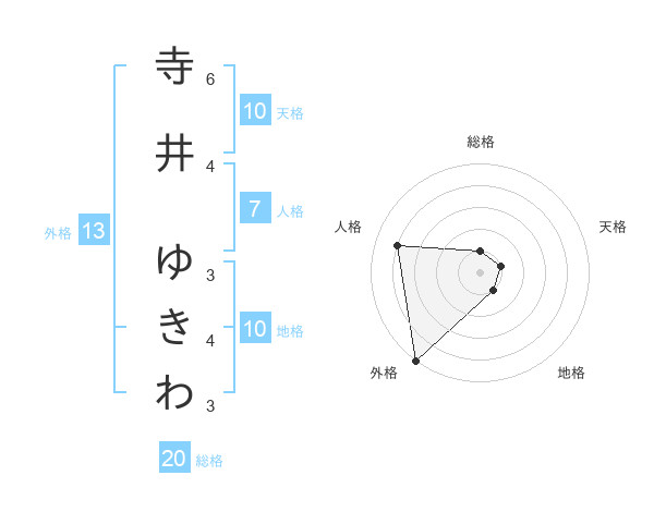 寺井 ゆきわさんを姓名の画数から五運を鑑定