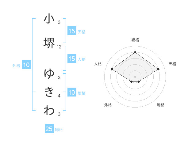 小堺 ゆきわさんを姓名の画数から五運を鑑定