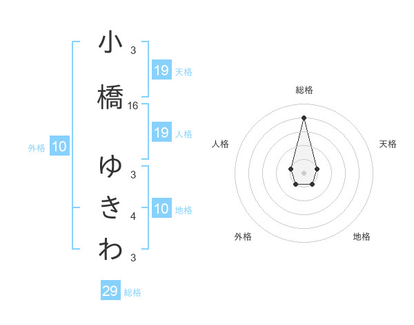 小橋 ゆきわさんを姓名の画数から五運を鑑定