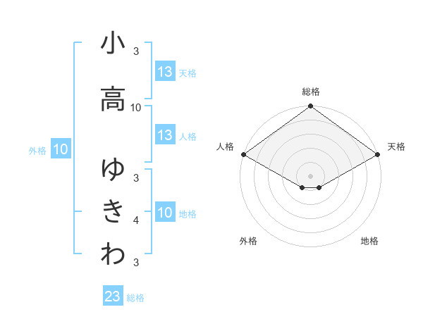 小高 ゆきわさんを姓名の画数から五運を鑑定