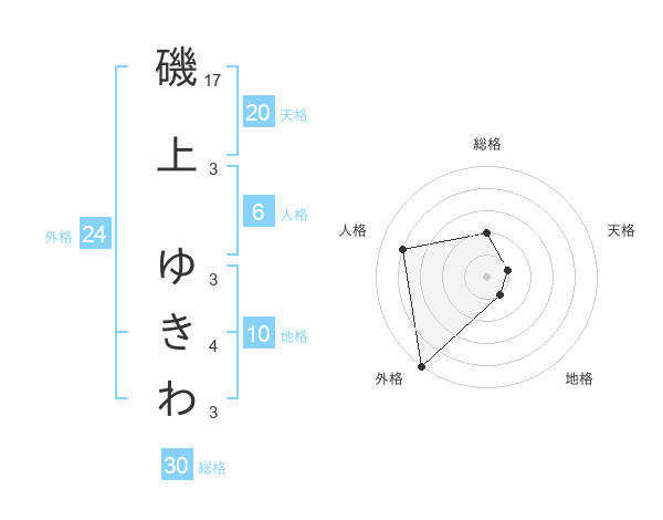 磯上 ゆきわさんを姓名の画数から五運を鑑定