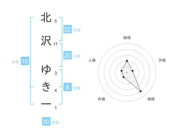 北沢 ゆき一さんの天格は22画の1点!