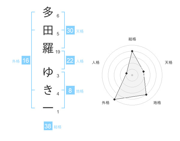 多田羅 ゆき一さんを姓名の画数から五運を鑑定