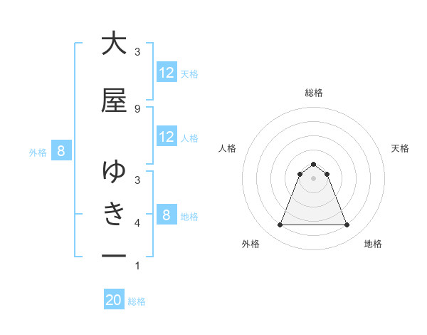 大屋 ゆき一さんを姓名の画数から五運を鑑定