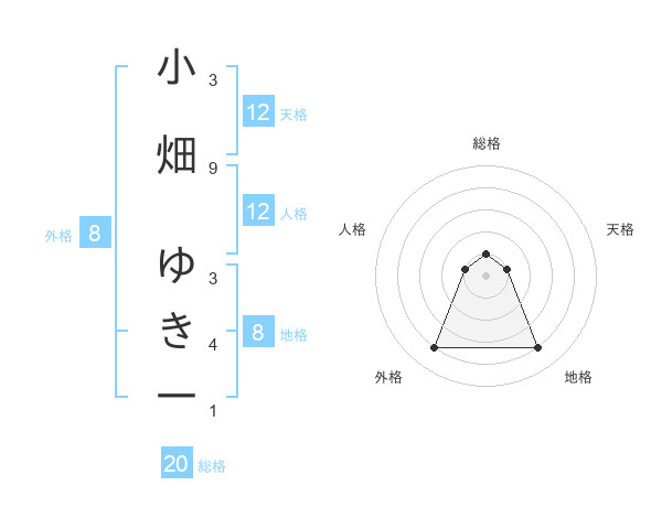 小畑 ゆき一さんを姓名の画数から五運を鑑定