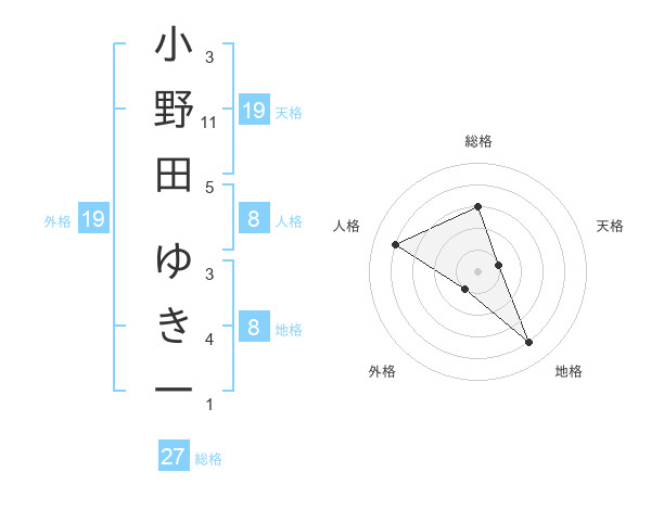 小野田 ゆき一さんを姓名の画数から五運を鑑定