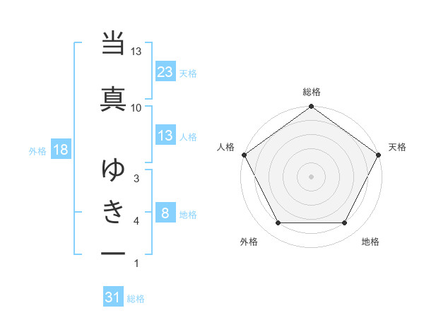 当真 ゆき一さんを姓名の画数から五運を鑑定
