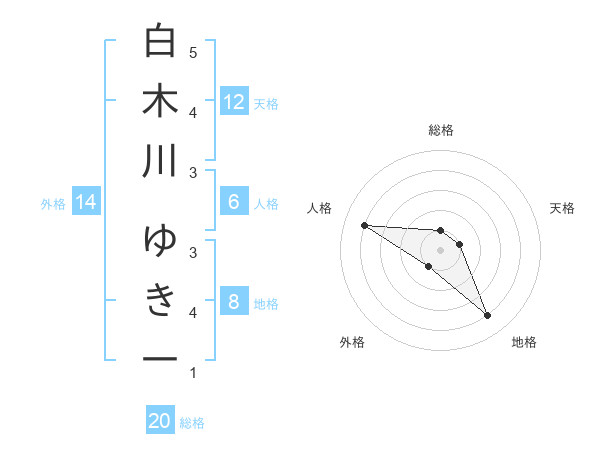 白木川 ゆき一さんを姓名の画数から五運を鑑定