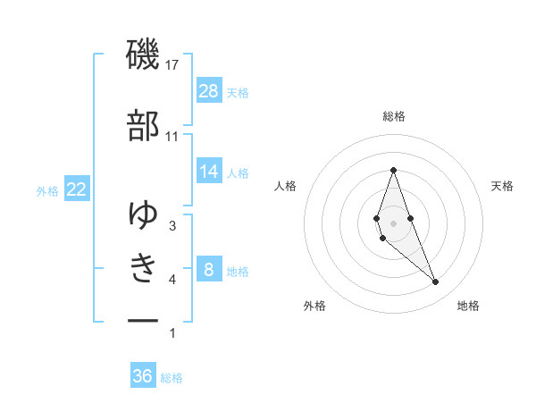 磯部 ゆき一さんを姓名の画数から五運を鑑定