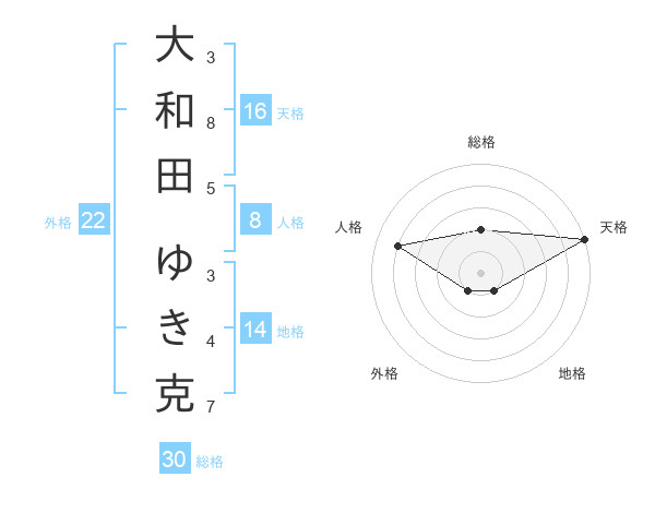 大和田 ゆき克さんを姓名の画数から五運を鑑定