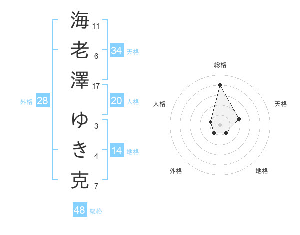 海老澤 ゆき克さんの総格は48画の4点!