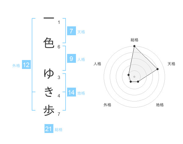 一色 ゆき歩さんの総格は21画の5点!