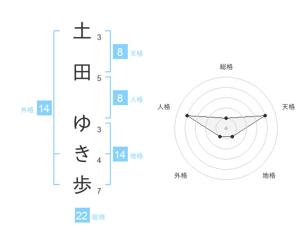 土田 ゆき歩さんを姓名の画数から五運を鑑定