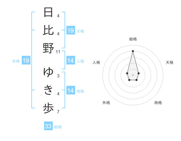 日比野 ゆき歩さんの総格は33画の4点!