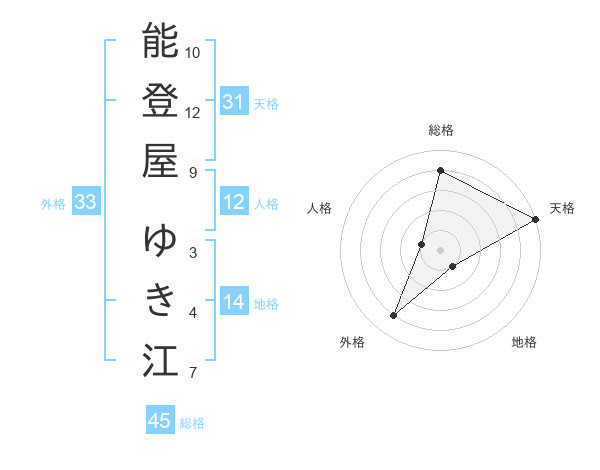 能登屋 ゆき江さんの総格は45画の4点!
