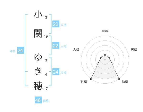 小関 ゆき穂さんを姓名の画数から五運を鑑定