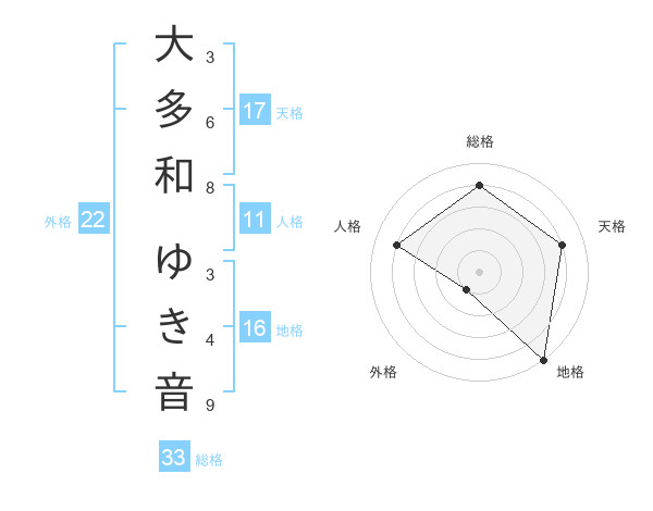 大多和 ゆき音さんを姓名の画数から五運を鑑定