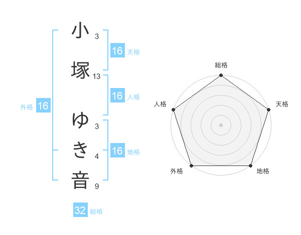 小塚 ゆき音さんを姓名の画数から五運を鑑定