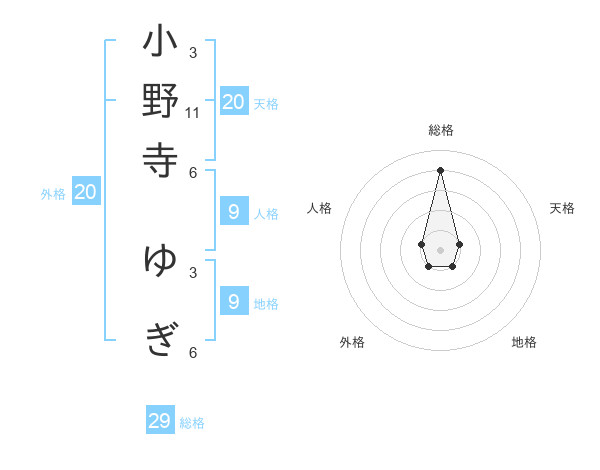 小野寺 ゆぎさんの天格は20画の1点!