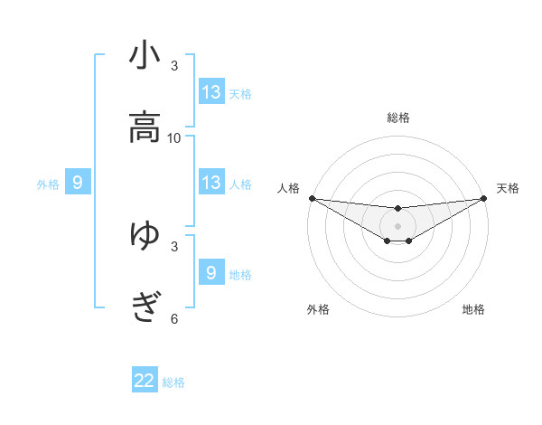 小高 ゆぎさんを姓名の画数から五運を鑑定