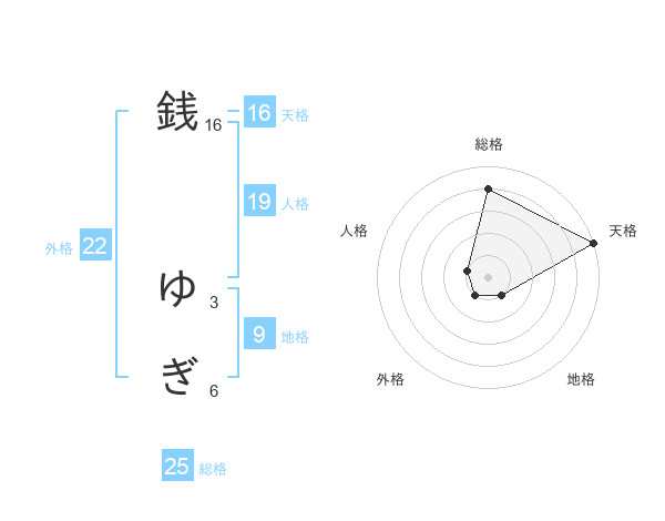 銭 ゆぎさんを姓名の画数から五運を鑑定