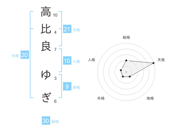 高比良 ゆぎさんを姓名の画数から五運を鑑定