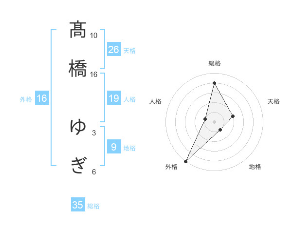 髙橋 ゆぎさんの総格は35画の4点!
