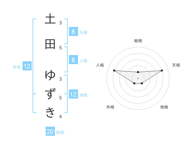 土田 ゆずきさんを姓名の画数から五運を鑑定