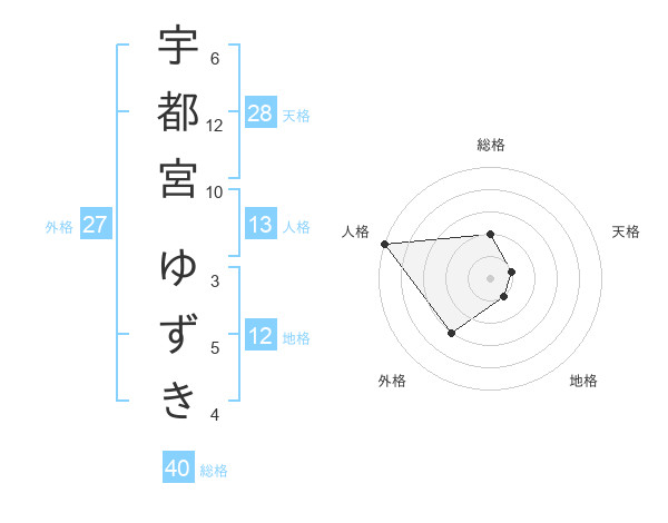 宇都宮 ゆずきさんを姓名の画数から五運を鑑定