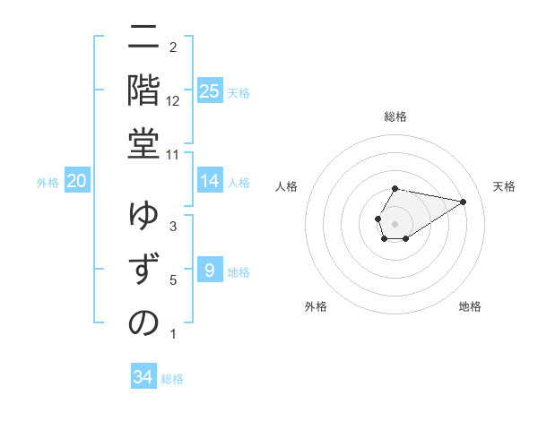 二階堂 ゆずのさんを姓名の画数から五運を鑑定
