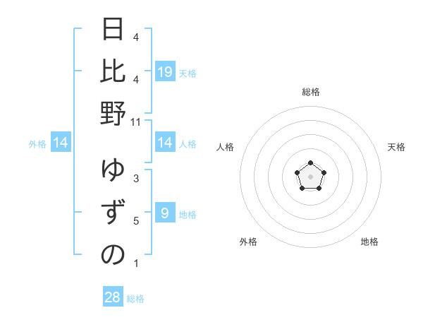 日比野 ゆずのさんを姓名の画数から五運を鑑定