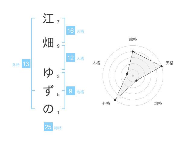 江畑 ゆずのさんの天格は16画の5点!
