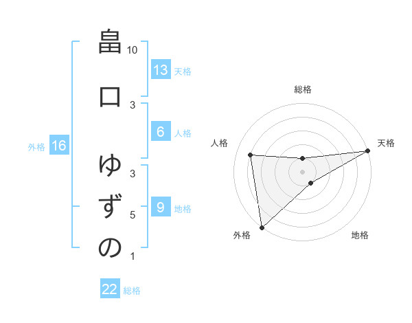 畠口 ゆずのさんの天格は13画の5点!
