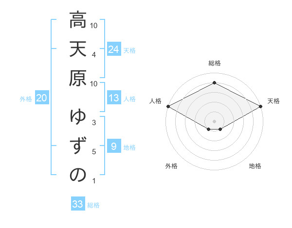 高天原 ゆずのさんの天格は24画の5点!