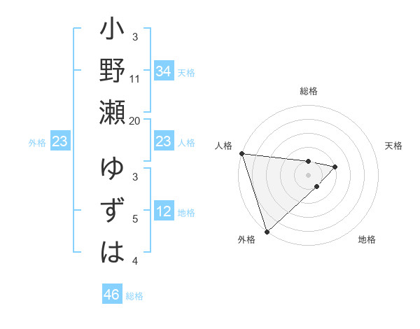 小野瀬 ゆずはさんを姓名の画数から五運を鑑定