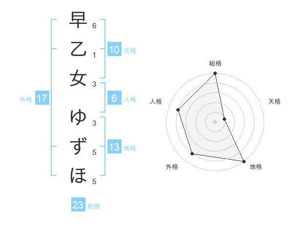 早乙女 ゆずほさんを姓名の画数から五運を鑑定