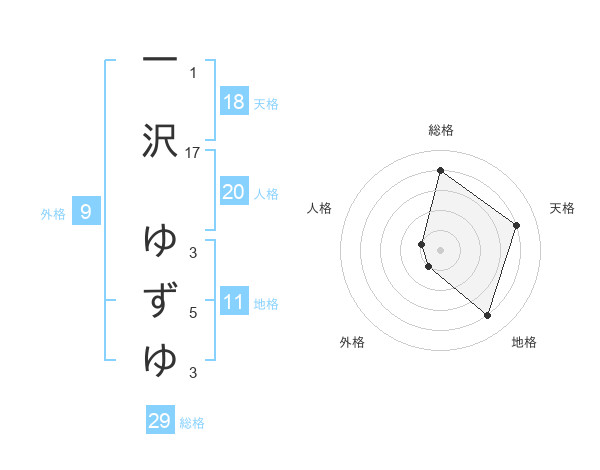 一沢 ゆずゆさんを姓名の画数から五運を鑑定
