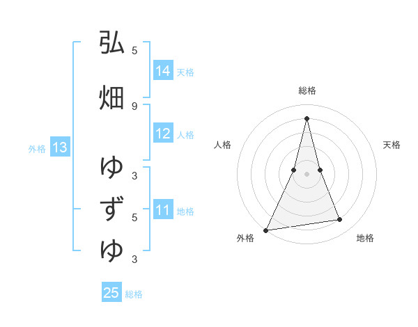 弘畑 ゆずゆさんの外格は13画の5点!