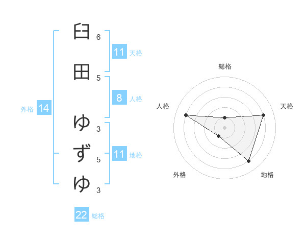 臼田 ゆずゆさんを姓名の画数から五運を鑑定