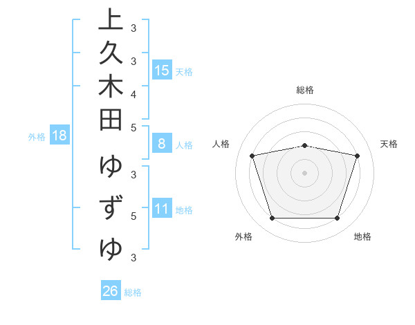 上久木田 ゆずゆさんを姓名の画数から五運を鑑定