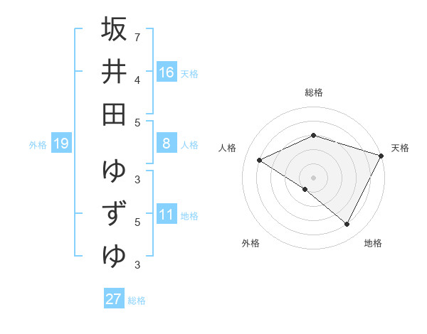 坂井田 ゆずゆさんを姓名の画数から五運を鑑定