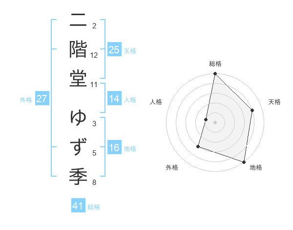 二階堂 ゆず季さんの総格は41画の5点!