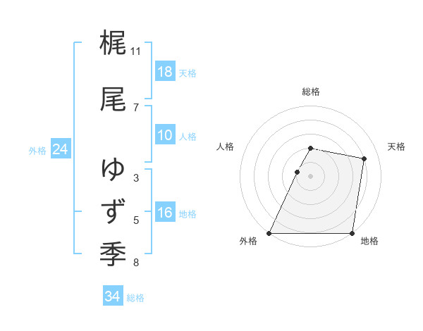 梶尾 ゆず季さんの外格は24画の5点!