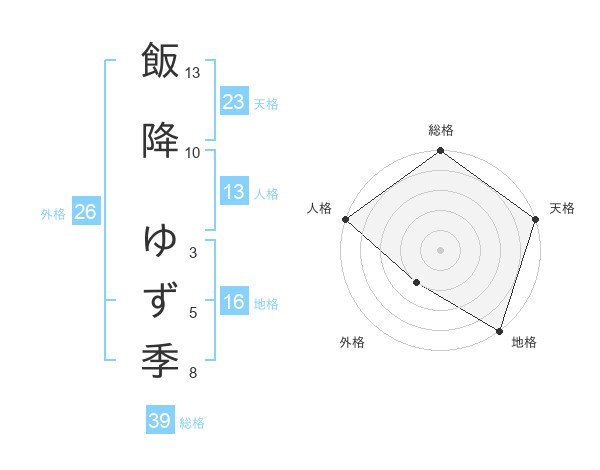 飯降 ゆず季さんの総格は39画の5点!