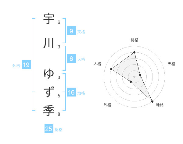 宇川 ゆず季さんを姓名の画数から五運を鑑定
