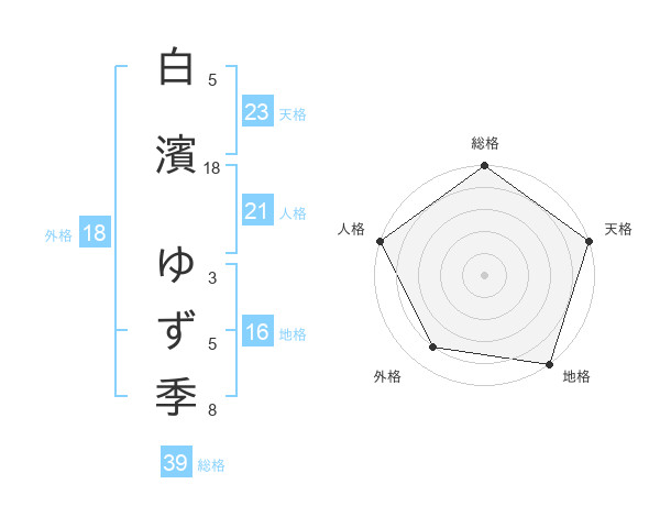 白濱 ゆず季さんの総格は39画の5点!