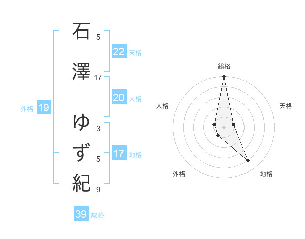 石澤 ゆず紀さんを姓名の画数から五運を鑑定