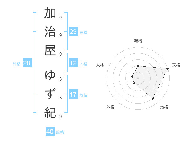 加治屋 ゆず紀さんを姓名の画数から五運を鑑定