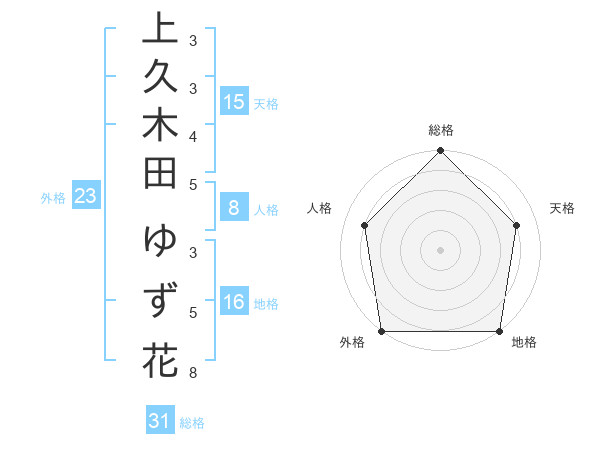 上久木田 ゆず花さんの外格は23画の5点!