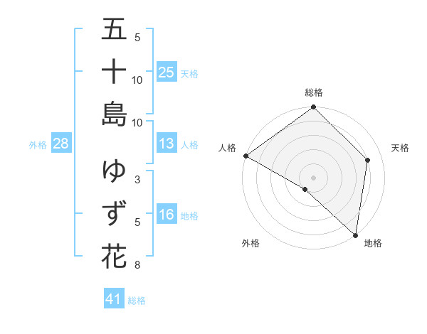 五十島 ゆず花さんを姓名の画数から五運を鑑定
